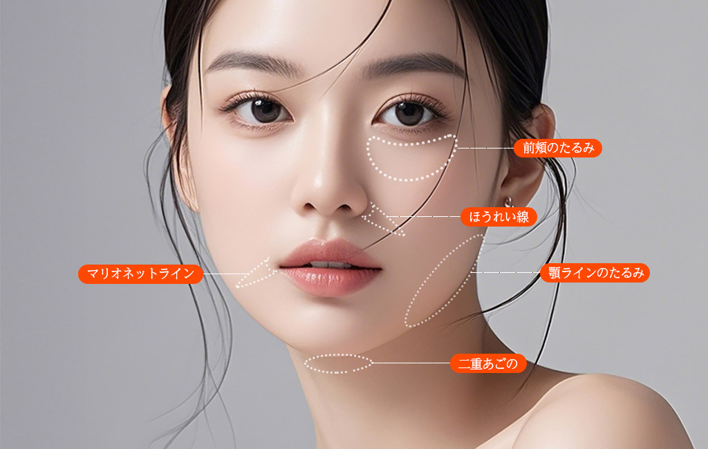 加齢によって前頬・横頬などの皮膚のたるみが悩みの場合、