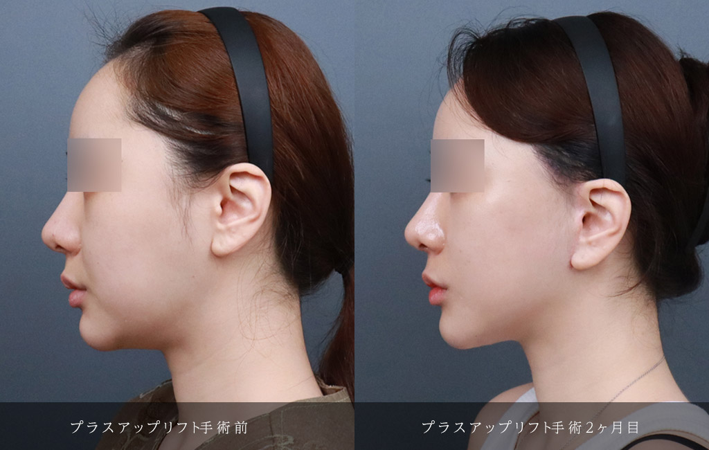 윤곽, 양악수술과 같이 뼈를 건드리는 수술은 시간이 갈수록 피부와 조직이 아래로 처지게 됩니다.플러스업리프팅은 처진 피부의 위치를 원래의 위치로 고정하며, 뼈를 건드리는 수술 후 줄어든 얼굴의 크기에 맞게 피부를 절제 하여 얼굴 라인을 만들어 줍니다.