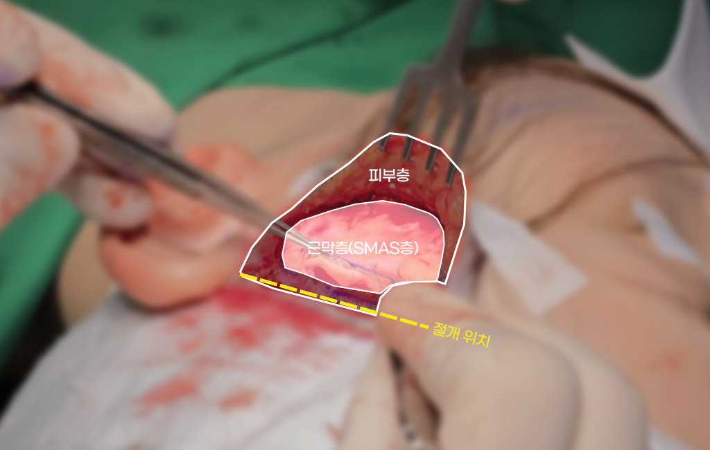 대부분의 안면거상술은 시간을 줄이기 위해 피하층 중간으로 박리를 합니다.