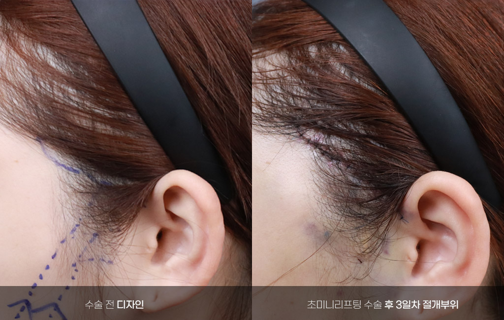 초미니리프팅은 헤어라인쪽으로만 절개해