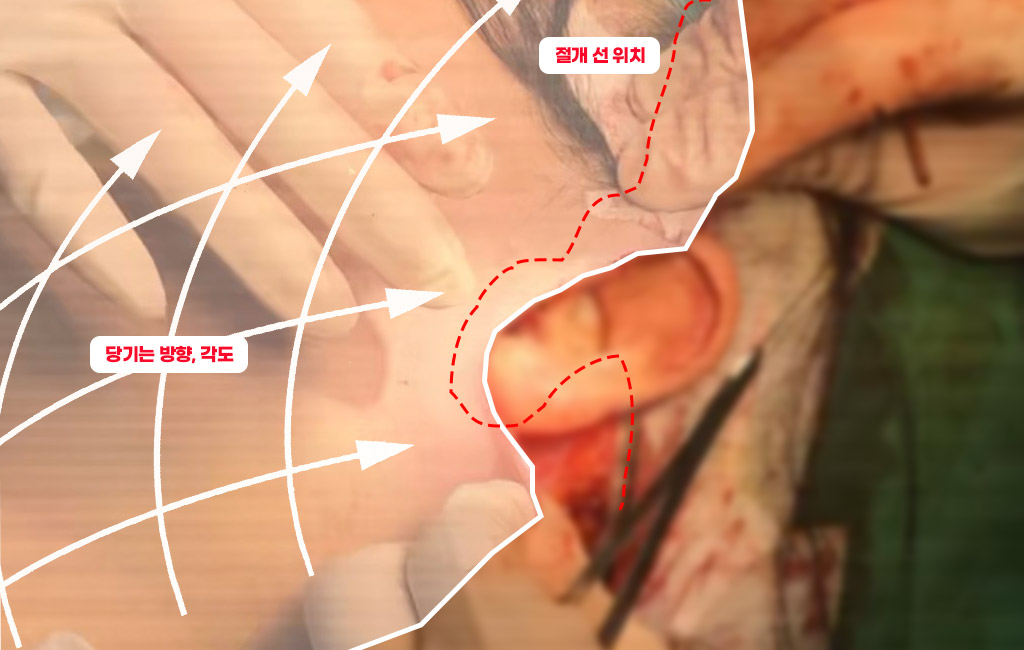 대부분의 안면거상술은 시간을 줄이기 위해 피하층 중간으로 박리를 합니다.