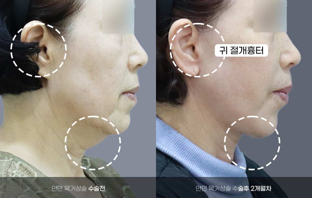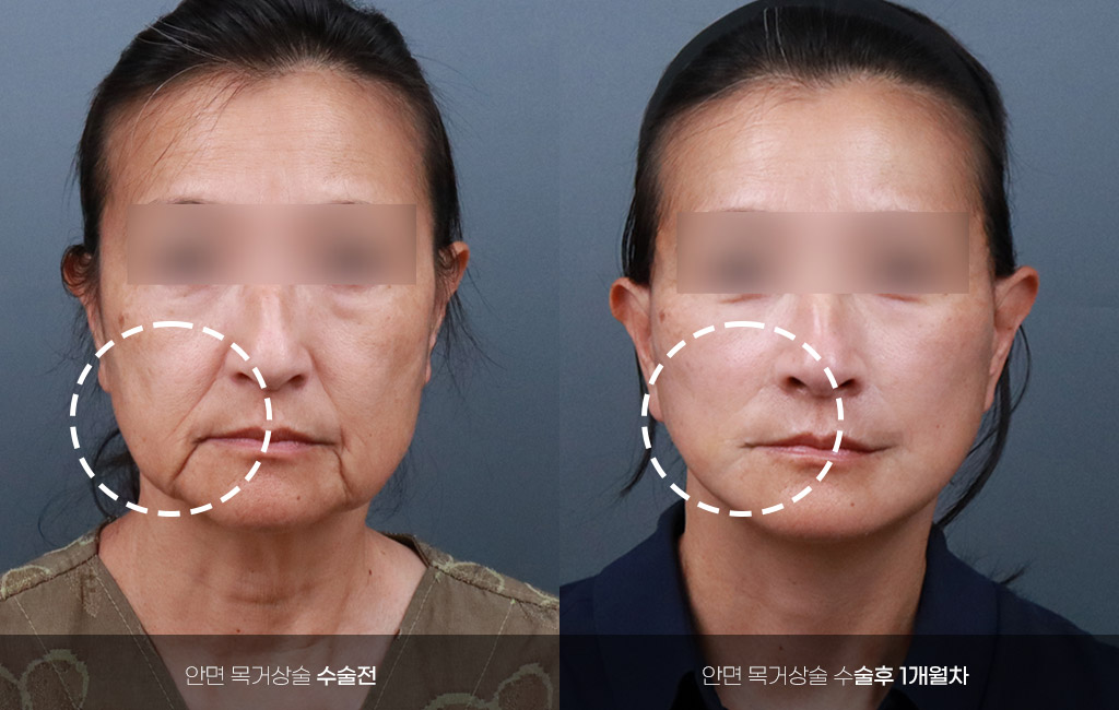 안면목거상술로 개선하며 근육과 피부처짐이 심한 경우