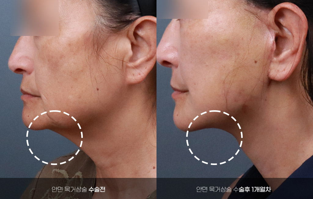 근육과 피부처짐이 심한 경우 목거상술을 함께 하시는 것이 도움이 됩니다.