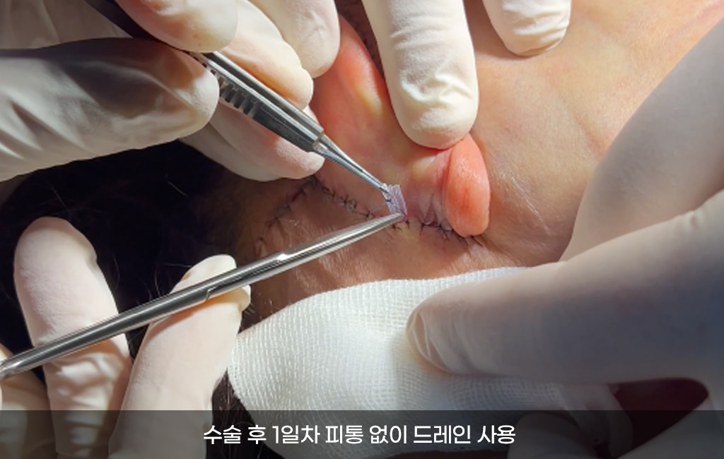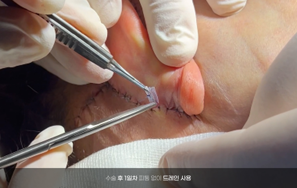 칭칭 감은 붕대,번거로운 피통 없이 당일 퇴원이 가능합니다. 정확한 위치와 섬세한 박리,출혈을 꼼꼼하게 잡아가며 수술 후 회복의 속도를 높혀드립니다. 수술 당일 달라진 얼굴을 확인할 수 있습니다.