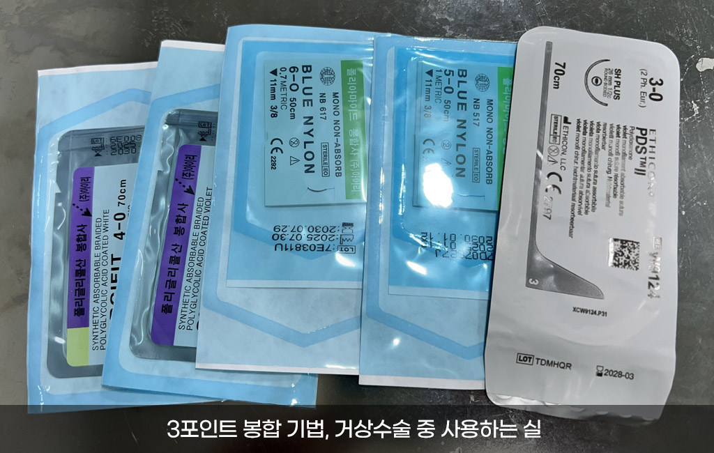 3포인트 봉합기법, 층층이 다르게 사용하는 봉합실